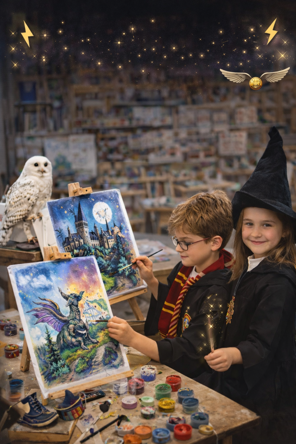 Zapraszamy wszystkie młode czarownice i czarodziejów na wyjątkową, magiczną godzinę w świecie Harry'ego Pottera! Podczas warsztatów dzieci wyruszą w artystyczną podróż do świata magii, gdzie stworzą własne magiczne obrazy inspirowane Hogwartem, zaklęciami i niezwykłymi stworzeniami. Niech Farboteka na chwilę zamieni się w szkołę magii i czarodziejstwa! Mile widziane przebrania – peleryny, różdżki i czarodziejskie kapelusze! W cenie: magia, wata cukrowa, kreatywna zabawa, tatuaże i własny obraz do zabrania do domu. Liczba miejsc jest ograniczona – zapisz swojego małego czarodzieja zanim wszystkie miejsca znikną jak po zaklęciu!